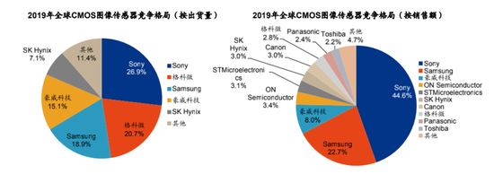 今年,国产手机拍照进入了“1亿像素时代”,提升画质主要靠更多的摄像头,以及更好的CMOS。在全球市场,按销售额统计,索尼和三星占据将近七成市场份额,豪威科技排名第三,占比8%。