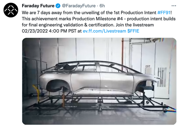 北京时间2月17日上午消息,法拉第未来宣布FF 91量产版将在太平洋时间2月23日正式发布。