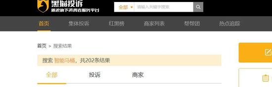 在今年,年初的疫情让智能坐便器再次受到消费者的热捧,据阿里指数显示,2020年第一季度智能马桶采购指数从2月份开始,就在所有卫浴产品中维持较高水平;京东春季家装节数据亦显示,3月,智能马桶成交额同比增长超2倍,智能马桶盖同比去年增长近5倍。不过,与之相对的,则是对于智能坐便器的投诉不断,在黑猫投诉平台上,跟智能坐便器相关的投诉多达202条,投诉内容涉及售后不处理、马桶盖不加热、不能正常使用等多方面问题。