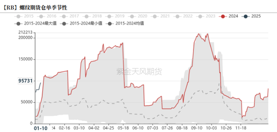 截至2025年1月10日,日均生铁产量为224.37万吨,环比下行0.83万吨,略高于近三年内同期水平。
