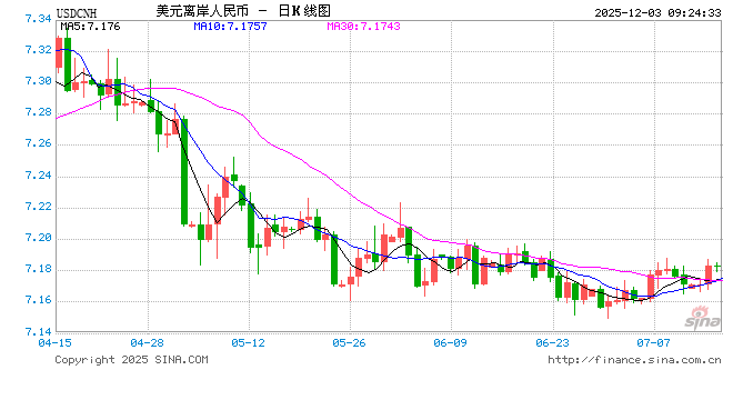 12月3日,人民币兑美元中间价报7.0754,上调40点。升值至2024年10月14日以来最高。