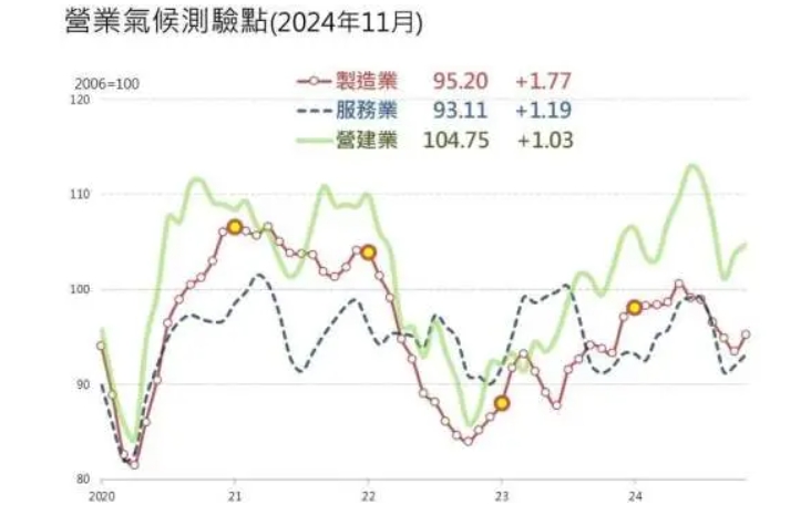 中国台湾经济研究院今日公布的数据显示,11月的营业气候测验点调查结果反映出制造业、服务业和营建业的不同表现。其中,制造业结束连续五个月下跌趋势,环比增长1.77点,达到95.20点,显示全球经济在温和成长中略有改善。服务业持续上扬,上升1.19点至93.11点,为连续两个月增长,而营建业也呈现向上趋势。 制造业:新兴科技需求助推订单增长 尽管车用和工业终端市场需求疲软,加之品牌客户提前拉货导致11月晶片接单与出货规模缩减,但人工智能(AI)和高效能运算(HPC)等新兴科技需求的强劲表现支撑了产业成长。这使得集成电路(IC)制造和印刷电路板的订单表现良好。 然而,对未来半年的展望存在一定不确定性。一方面,特朗普可能再度当选的消息令全球贸易政策的不确定性升温,可能对企业投资信心造成影响。另一方面,随着全球电子行业扩大资本支出,半导体设备订单增长,特别是在AI和智能汽车等领域的稳定发展,高端芯片及封测需求增加,预计将进一步推升先进制程的产能利用率。 具体数据方面,11月制造业厂商认为景气“好”的比率为11.24%,较上月增加4.7个百分点;而认为“坏”的比率为0.19%,较上月减少0.15个百分点。不过,对未来半年的看法稍显谨慎,“看好”比例下降1.3个百分点至8.20%,而“看坏”比例上升3.2个百分点至6.23%。 服务业:证券业悲观,保险业与零售业乐观 服务业的表现因行业不同而差异较大。证券业者对11月景气有高达80%的比例持悲观看法,而保险业者中有70%对当月表现持乐观看法。对于未来半年,零售业者中约有一半比例持乐观看法,而证券业看好的比例略高于看坏。 尽管全球经济面临多重不确定性,包括贸易政策的不稳定因素,台湾制造业因新兴科技需求拉动呈现回稳迹象,服务业和营建业也延续了增长态势。然而,企业对未来半年经济发展的信心稍显疲弱,需继续关注全球经济环境及政策变化对台湾经济的影响。 (责任编辑:admin) |