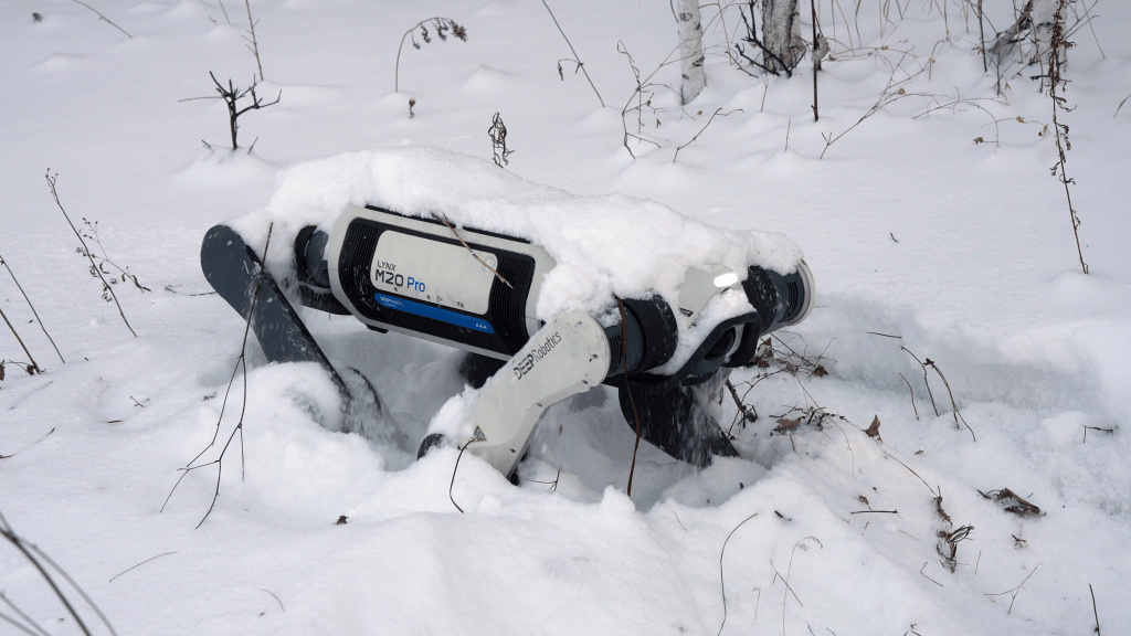 近日,在“中国冰雪之都”内蒙古呼伦贝尔牙克石,云深处科技携山猫M20轮足机器人,在-30℃的极端雪地中完成了一系列极寒性能测试。在真实冰雪环境中,山猫M20凭借云深处先进的低温适应技术与智能控制系统,全程运行稳定、指令执行可靠,不仅验证了其在极端环境下的持续作业能力,更展现了云深处科技在高寒、高危场景中赋能机器人落地应用的领先技术实力。 全地形机动稳定性:征服极寒冰雪复杂地貌 牙克石冬季积雪深厚、冰层厚度达2~4米,为机器人提供了极限环境测试的天然场地。山猫M20机器狗在近乎零附着力的冰面上,双足形态持续行走也能保持稳定平衡。在积雪中攀爬覆雪斜坡,灵活穿越多雪况复杂地形,根据地形切换至深雪步态控制模式,全程姿态平稳,无打滑、无失控。凭借云深处科技自研的高性能关节模组与动态控制算法,从容应对各类地形挑战。