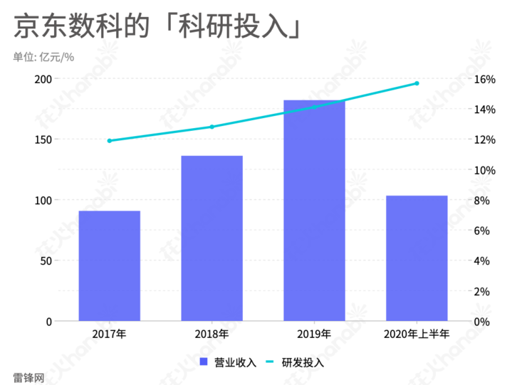 此外,2020年上半年,京东数科共有研发人员4172人,占员工总人数的比例为41.77%。根据研发人员总薪酬1286377000元粗略计算,京东数科研发人员的平均薪酬为5.1万元。