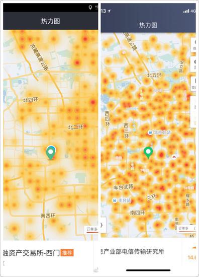 他说,7月之前的这个时间段,首先颜色不会这么深,而且南边的热力图要明显淡很多——而最近几天的颜色都更重,而且看起来全城都积压了过多的订单。他的快车司机端上显示,选单界面订单已经压满了,显示120单,实际上要更多,而且看起来能接单的人远比订单数少,换句话说,在他能看到的区域里,大部分人都无法叫到车。