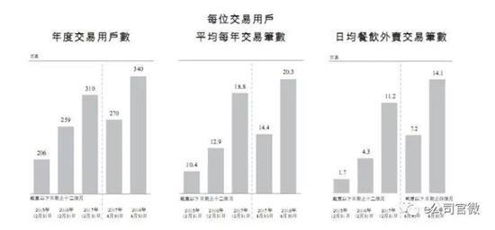 与此同时,2015-2017年三年间,美团交易用户分别为2.06亿、2.59亿、3.1亿。2017年4月30日至2018年4月30日,美团交易用户增长为3.4亿人。