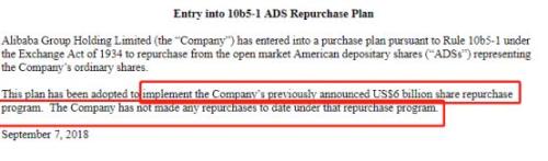 值得注意的是,同天晚上(9月7日),阿里巴巴集团也宣布将从公开市场持续回购股票,以执行公司在2017年制定的一项股权购买计划,当时宣布启动为期两年、总额60亿美元的股权回购。