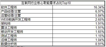 从热门岗位看,猎聘大数据显示,今年第三季度互联网行业核心职能需求前三名分别是软件工程师、产品经理/主管、运营经理/主管。之前号称“各个公司都缺”的数据分析师岗位,需求占比仅为0.91%。